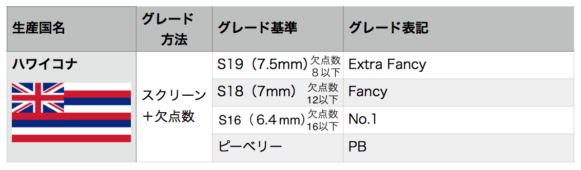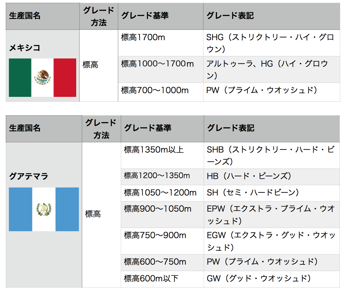 グレード分けの基準は各生産国によって異なりますが、